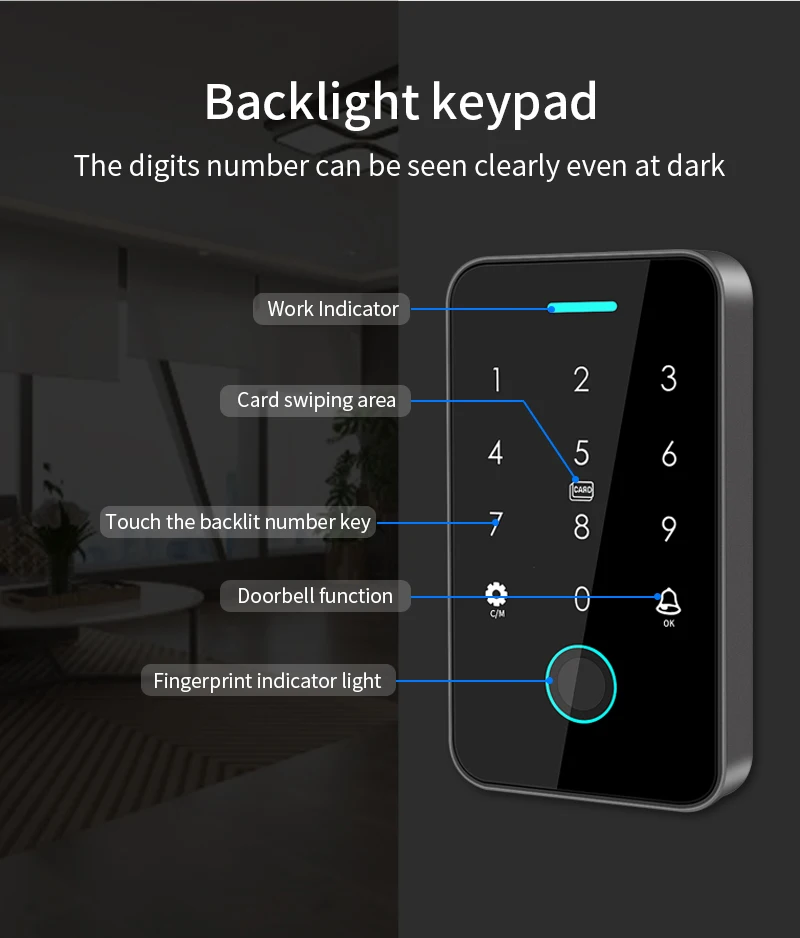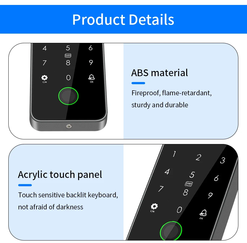 طريقة التعريف ldentification: بصمة الإصبع ، بطاقة RFID ، كلمة المرور ، تطبيق Tuya.