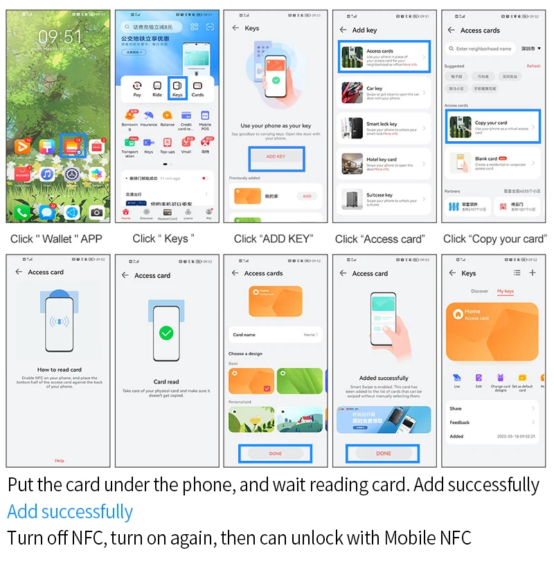 نوع قراءة البطاقة: يدعم معرف EM وبطاقة MF 1K متوافقة