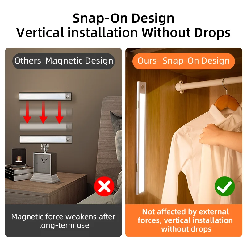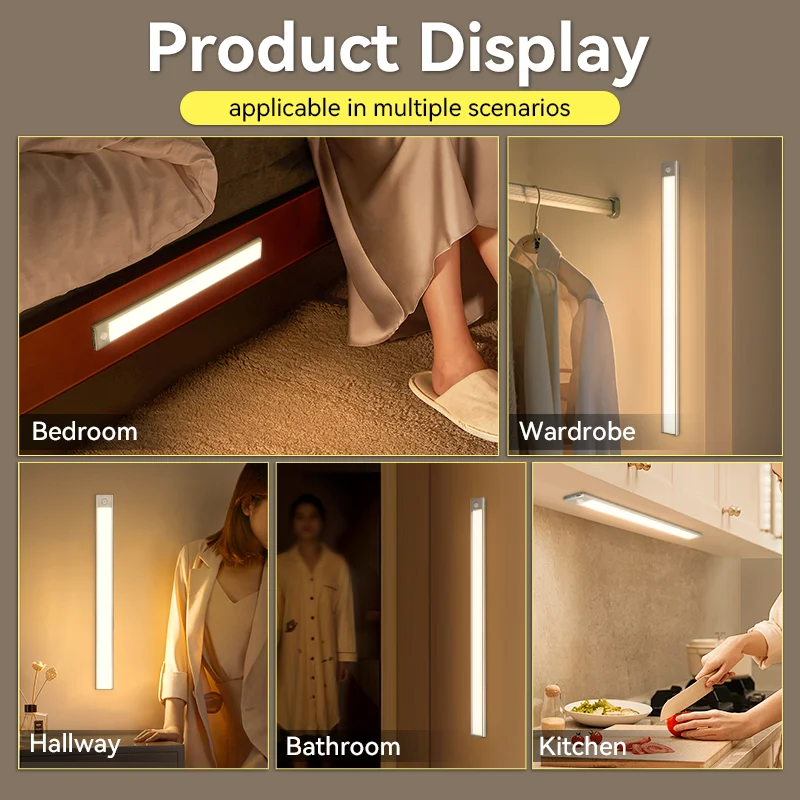 مصباح LED بمستشعر حركة لخزانة المطبخ ، إضاءة ليلية لاسلكية ، USB قابل لإعادة الشحن ، ألومنيوم ، خزانة غرفة النوم ، 20 ، 30 ، 40 ، 60