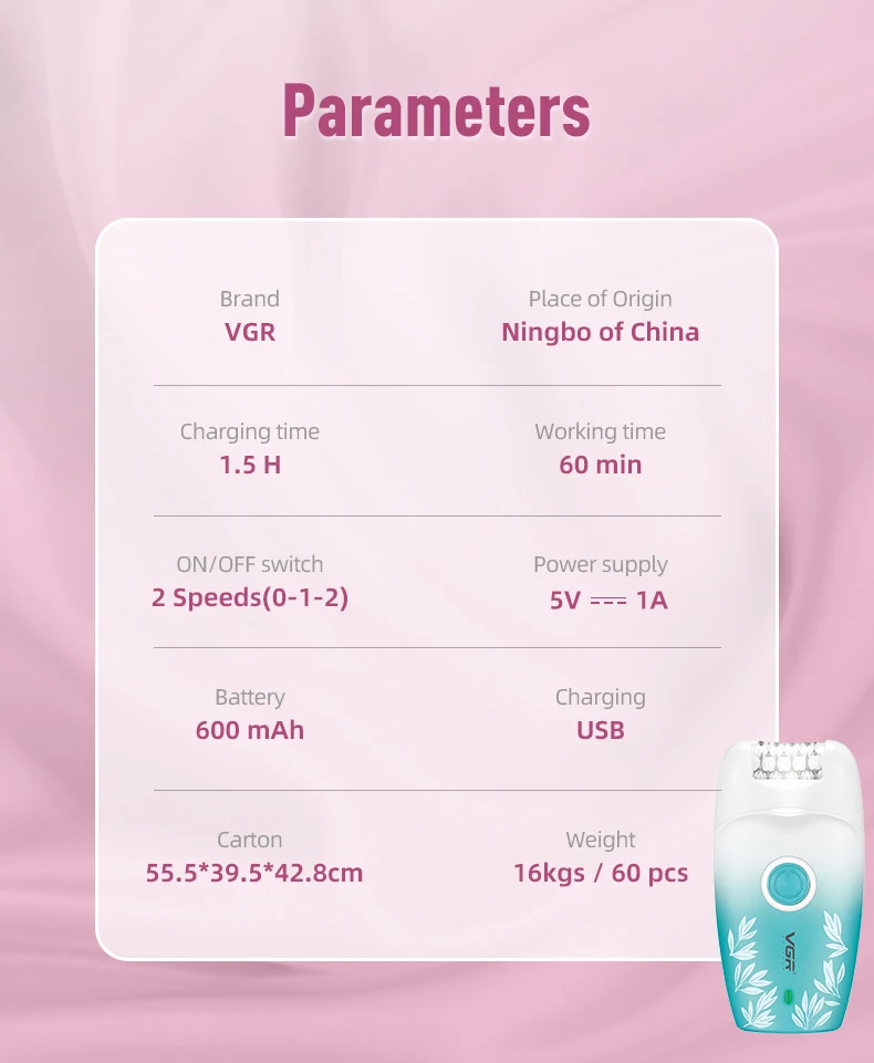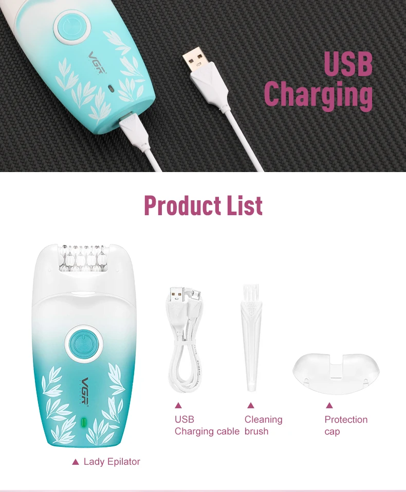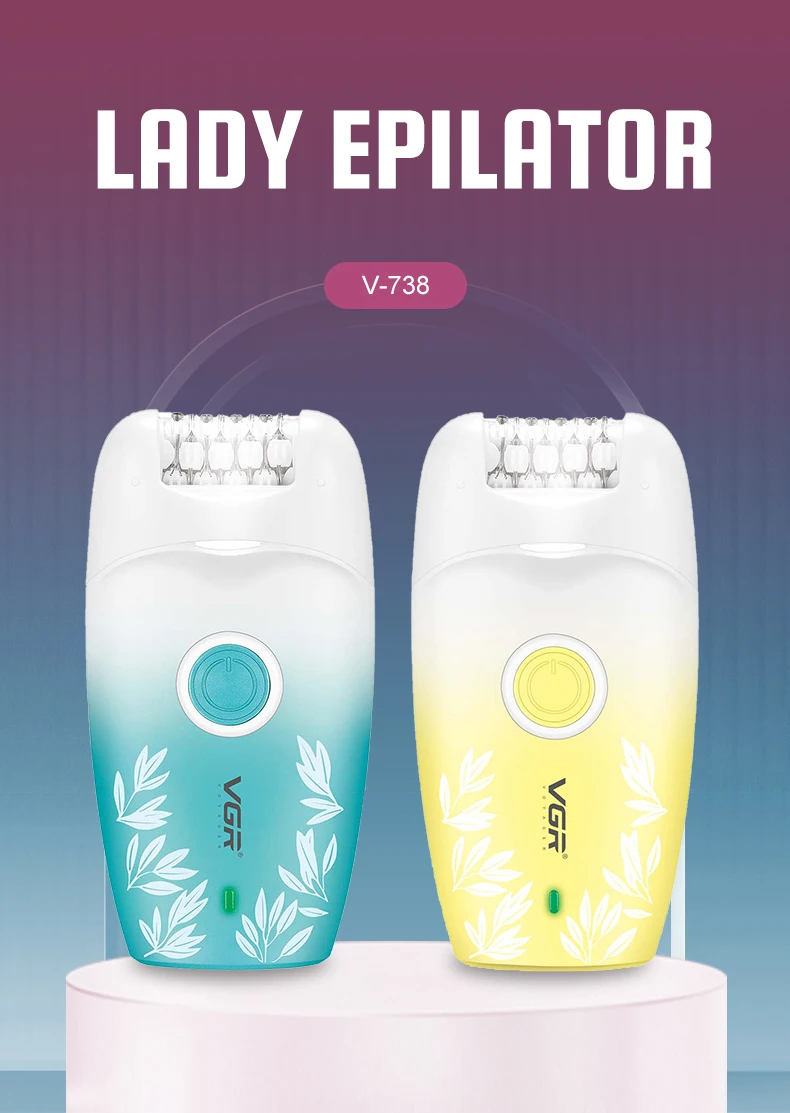 VGR 738 ماكينة حلاقة كهربائية لإزالة الشعر، ماكينة حلاقة نسائية احترافية قابلة لإعادة الشحن، جهاز إزالة الشعر المتدرج